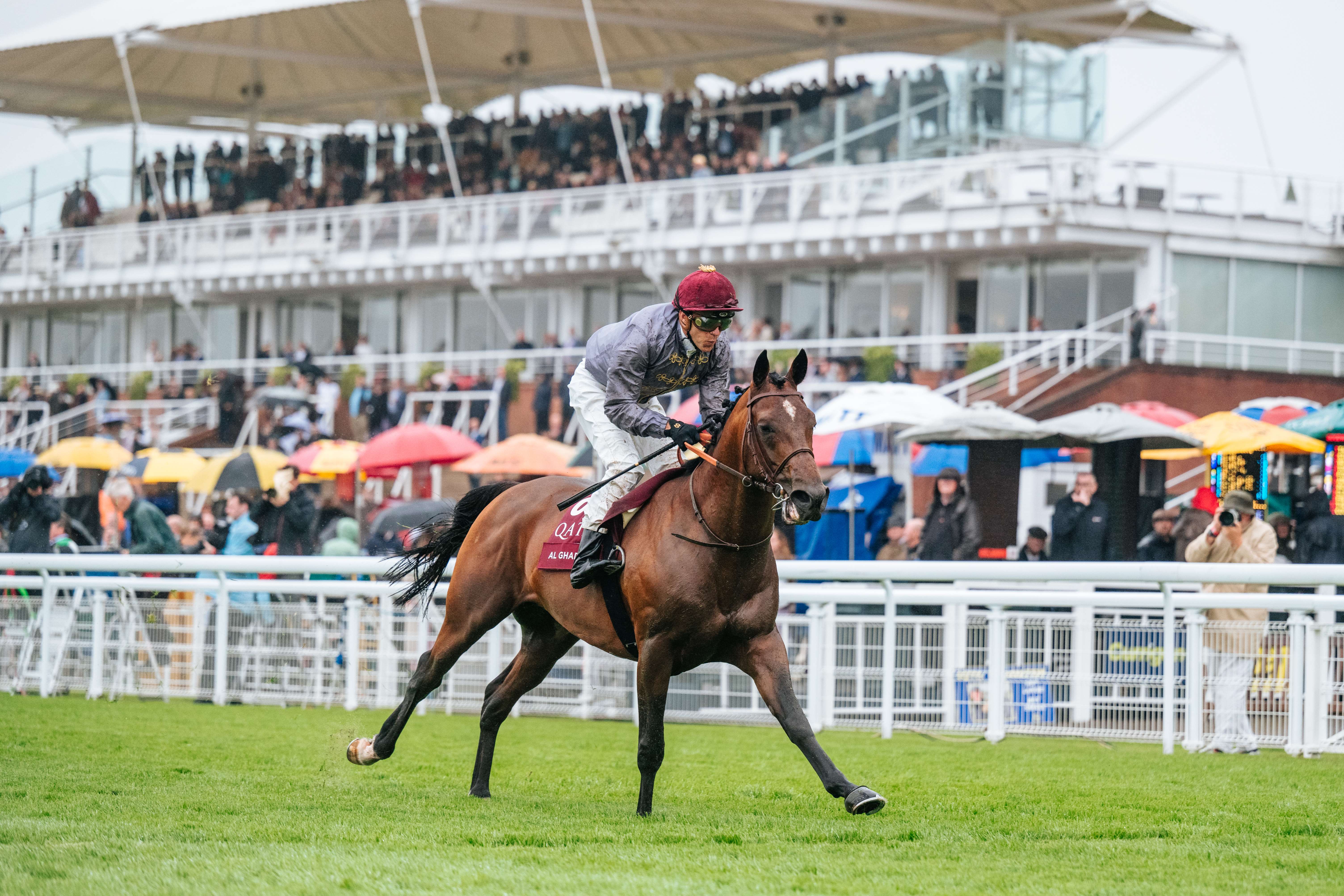 The winning distance of three and a quarter-lengths was in no way a reflection of the Francois Rohaut-trained colt’s dominance and it could easily have been more. First Class (7/1) plugged on take second, just ahead of the winner’s stable-mate Samlla (10/1) in third.