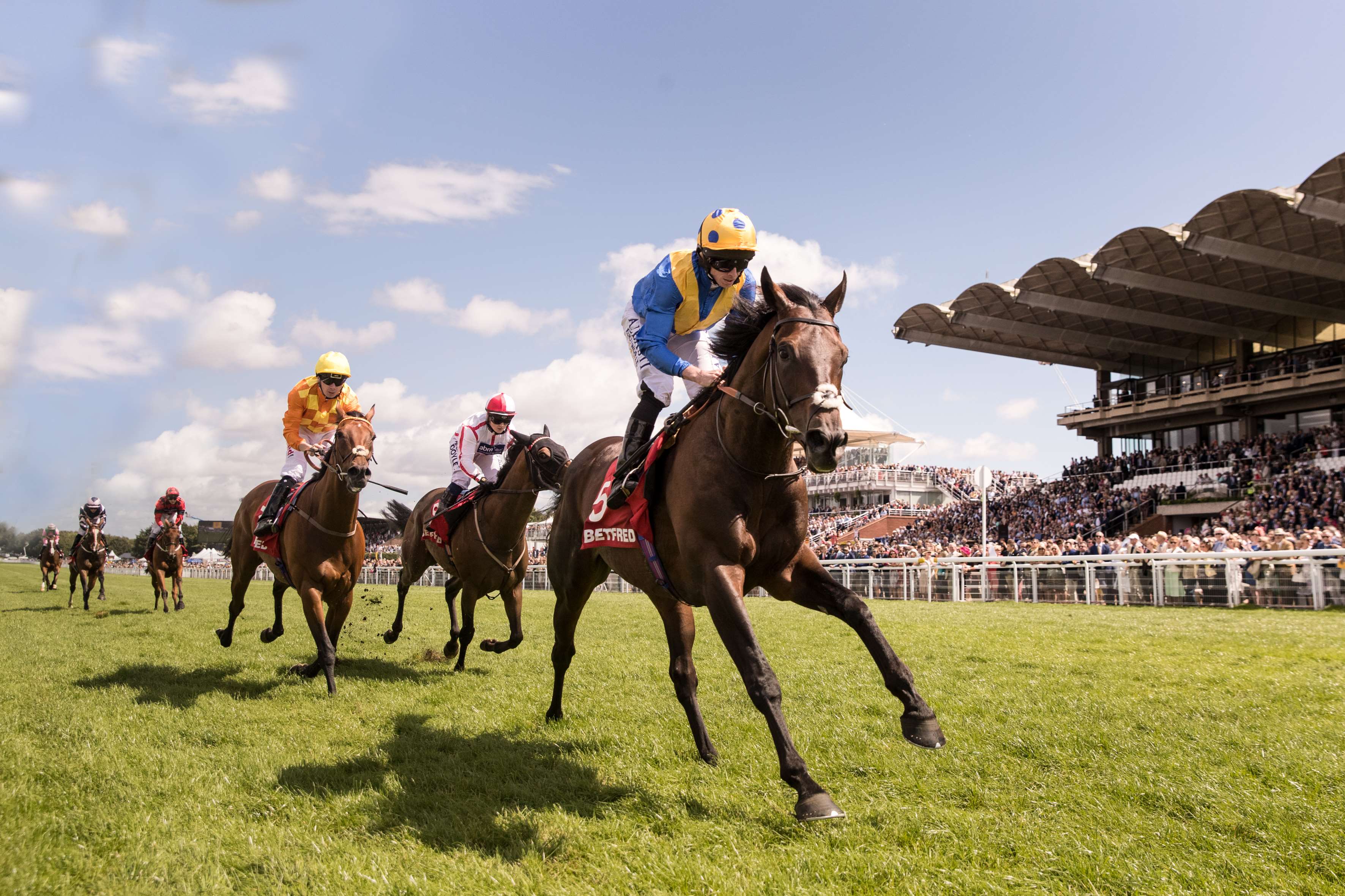 Other classy performers near the top of the weights include Major Jumbo (9st 9lb, Kevin Ryan, 20/1), runner-up in the G2 Duke of York Stakes on his penultimate start, and 2018 G1 Commonwealth Cup third Emblazoned (9st 7lb, John Gosden, 16/1).