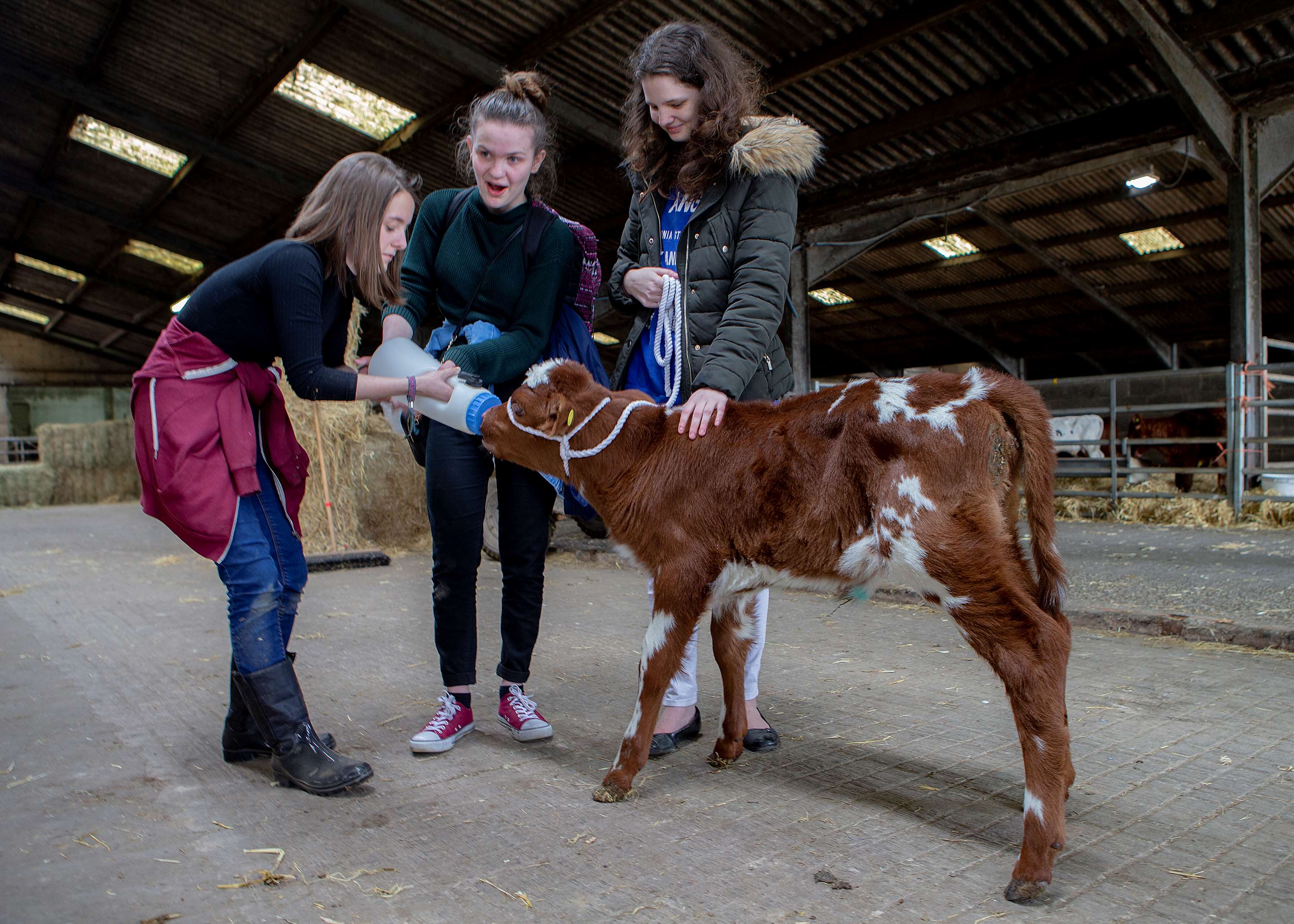 The Year 10 students who are all studying for a Vocational Award in Hospitality and Catering were given a tour of Goodwood’s Home Farm to visit the pigs, sheep and cattle. While at the farm the students saw how Goodwood produces its own milk on the Estate and were given the opportunity to bottle-feed milk to the new calves.