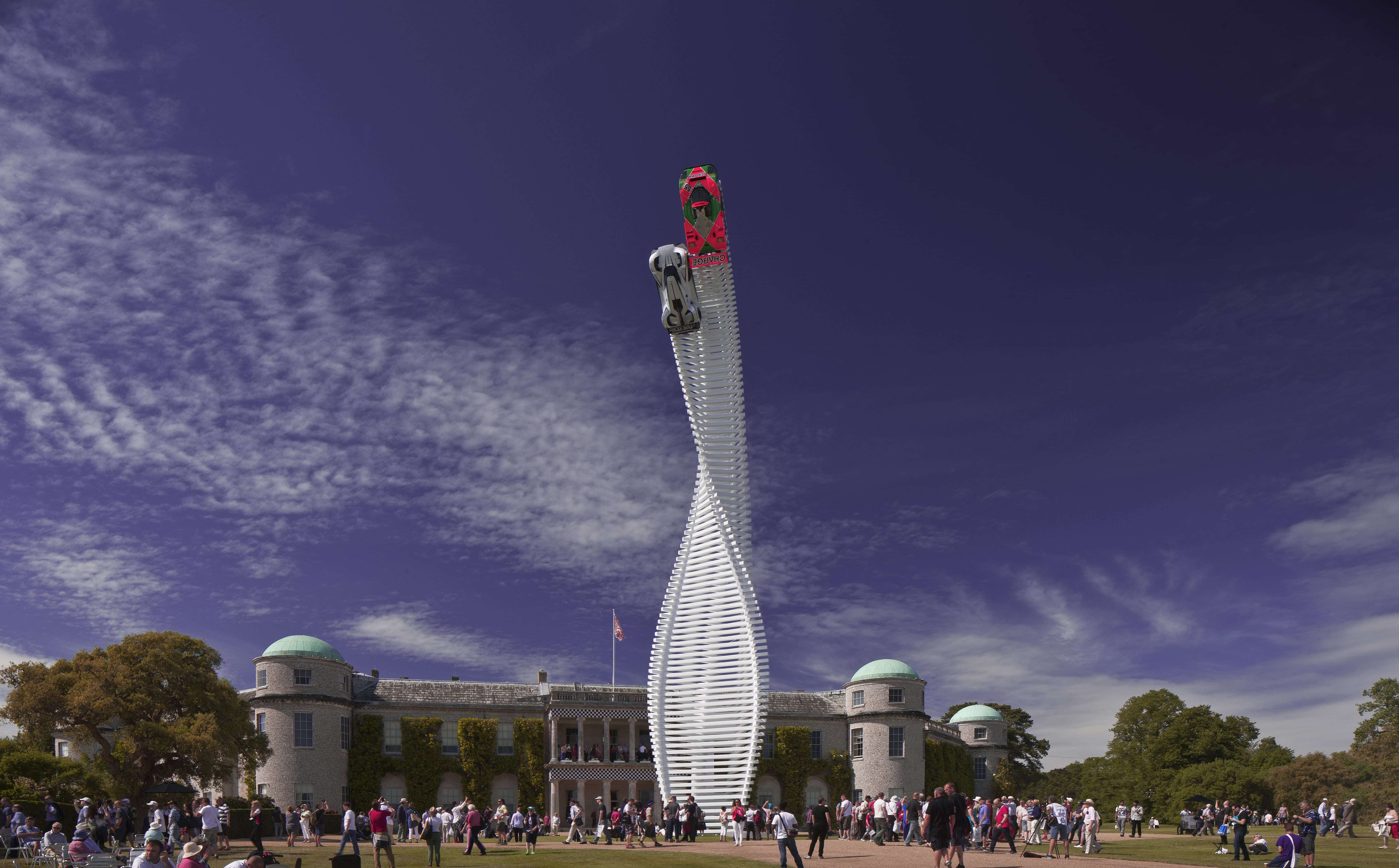 Gerry Judah’s professional relationship with the Duke of Richmond began when the Duke worked as one of the top commercial photographers in the UK and Judah was a set designer. When the idea occurred of creating a focal point for the burgeoning Festival of Speed, the Duke then turned to his collaborator to turn the idea into a towering metal reality.