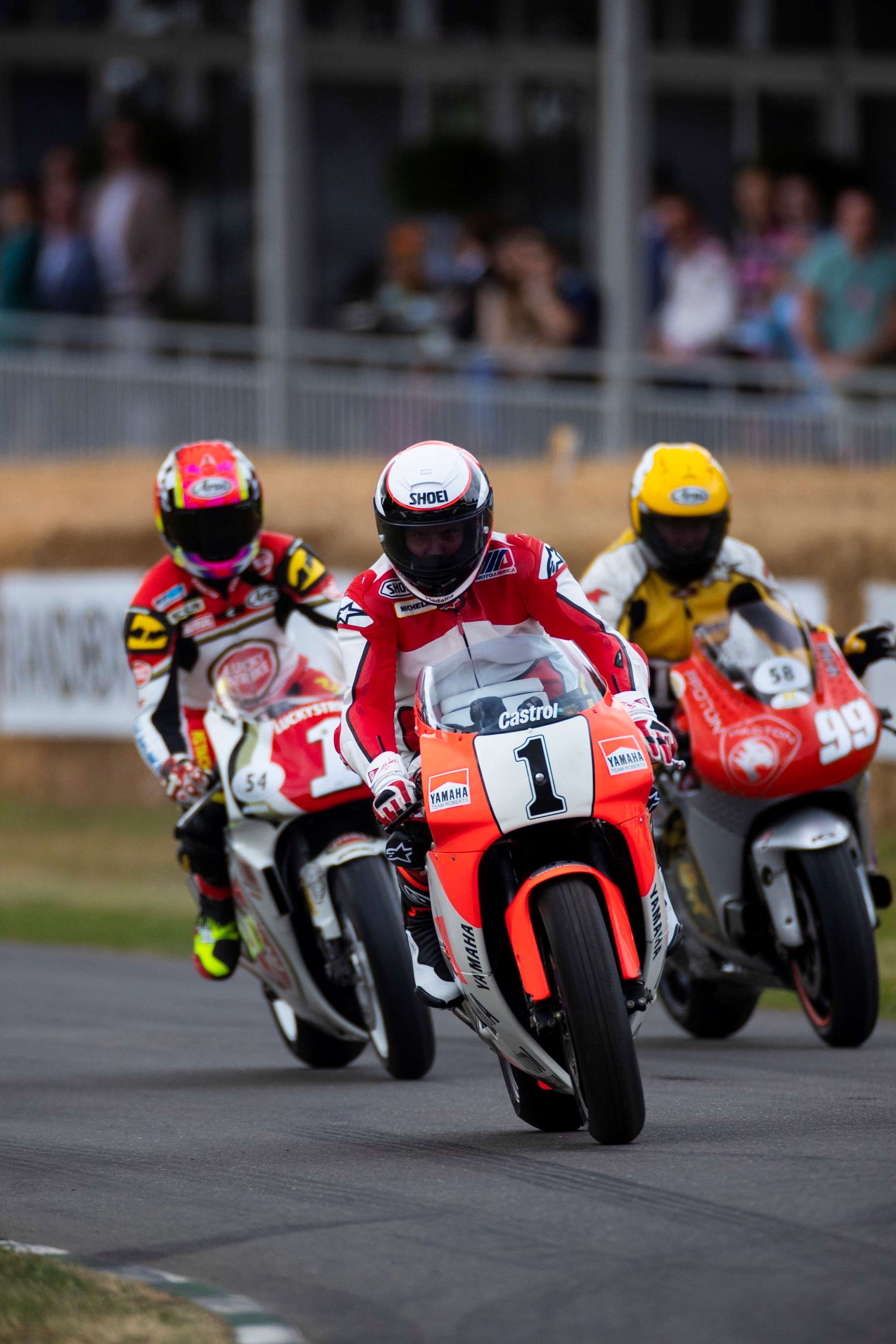 In the early 1990s, the Earl of March (now the 11th Duke of Richmond) began looking into the possibility of reopening the Circuit. Staging an event on private roads in Goodwood Park proved slightly easier, and in 1993, the very first Festival of Speed took place. The two-day event welcomed an estimated 25,000 spectators who watched nearly 100 cars and motorcycles in action on the Hill. Competitors and attendees included Tony Brooks and Roy Salvadori who went up together in an Aston Martin DBS3, George Harrison in his Rocket sports car, Nick Mason in his V16 BRM, Gordon Murray in a McLaren F1, and John Surtees, who was an event patron and organised the motorcycle entry.