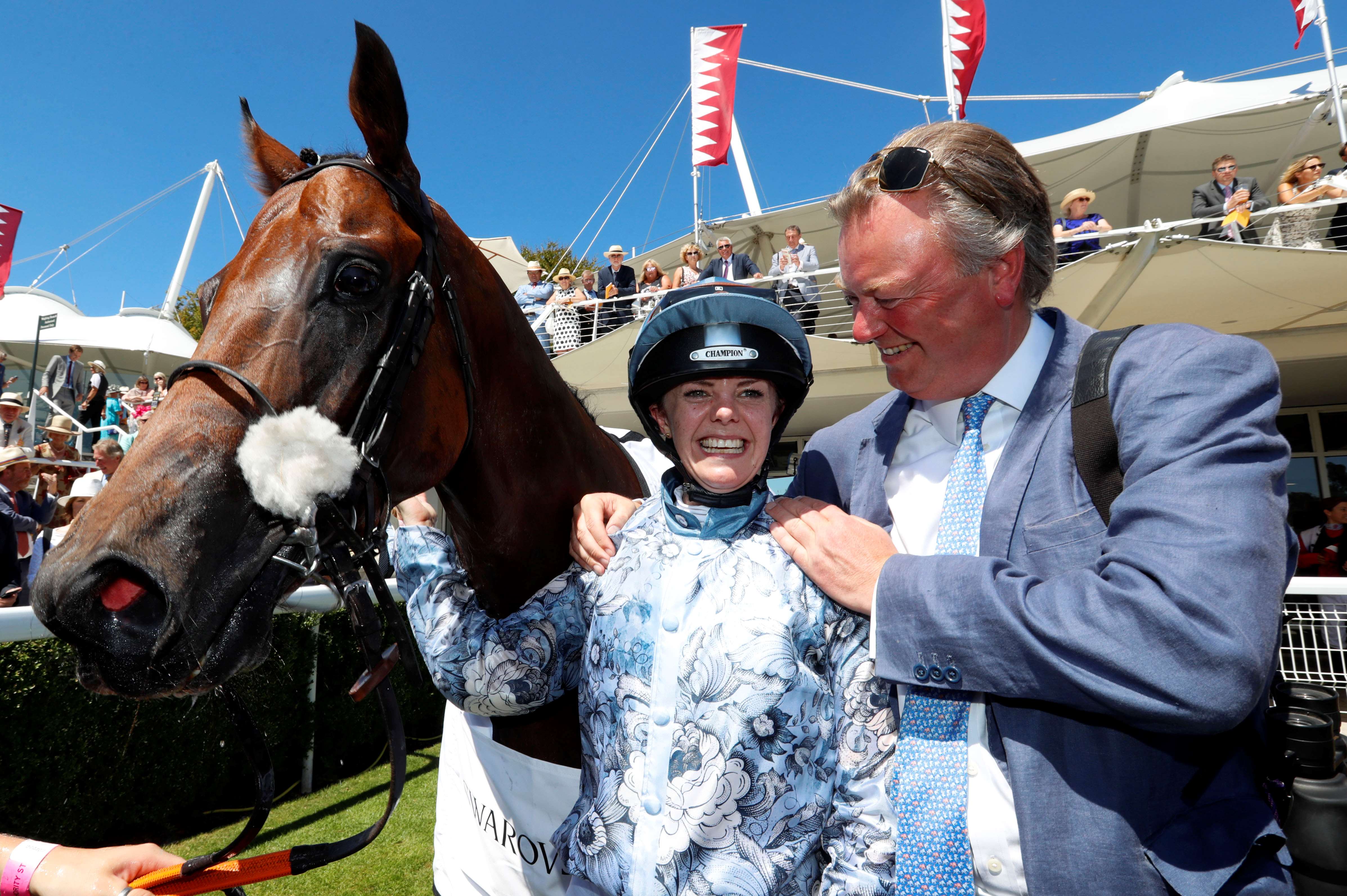 "I'm very proud of her. We said, 'He'll try to turn around at the start. Don't! Keep a short rein and keep him going forward and then let him go. If anyone deserves this win it is Katie, who has worked so hard."