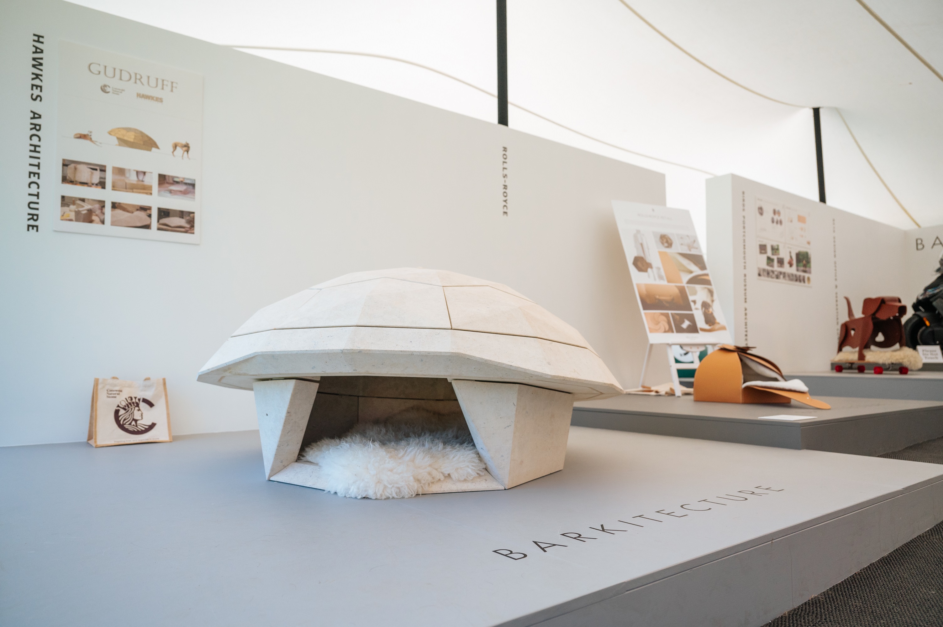 Joining us at the 2024 event, Barkitecture welcomed renowned architects Birds Portchmouth Russum Architects (2022 winners), Conran and Partners, Gianni Botsford Architects (2023 winners), George & James Architects Ltd and Grimshaw Architecture to name a few. The 2024 competition was won by Rolls-Royce Motor Cars - as judged by Kevin McCloud and Bill Bailey - with ‘Pet-All’, a kennel that created a sense of calm and tranquillity deemed the best response to the brief ‘Lounge Access: For the Jet-Setting Dog’ for canines on the move.